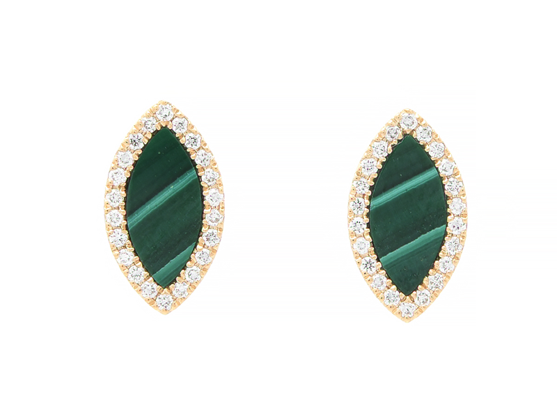 EARRINGS, 18K gold, malachites 0,84 ctw, 44 brilliant cut diamonds 0,12 ctw, approx W(H)/SI, pushback, weight 2,1 g.