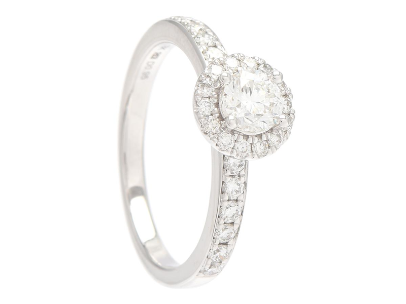 RING, 18K white gold, brilliant cut diamond 0,50 ct, TW(F)/VS2, GIA dossier 7376654825, 26 brilliant cut diamonds approx 0,45 ctw, approx TW/VS, size 17,75 mm, weight 4,4 g.