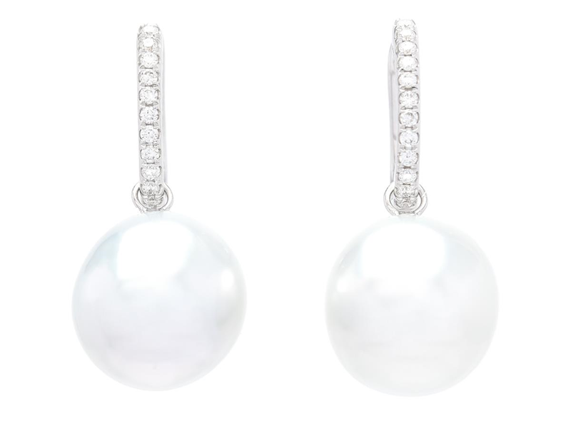 PEARL EARRINGS, 18K white gold, baroque South Sea pearls approx. 10,8 mm, detachable, 24 brilliant cut diamonds approx. 0,15 ctw, approx. TW-W/VS, huggies, weight 5,1 g.