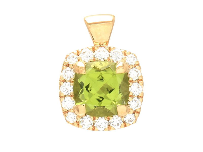 PENDANT, 18K gold, cushion cut peridot approx 1,62 ct, 16 brilliant cut diamonds approx 0,30 ctw, approx TW/VS, height 10 mm, weight 2,6 g.