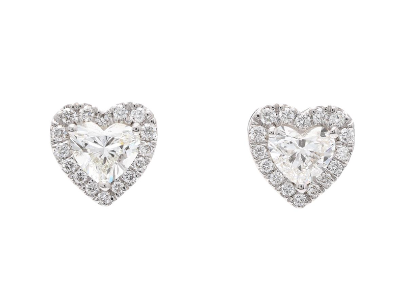 EARRINGS, 18K white gold, 2 heartshaped diamonds 0,32 respective 0,30 ct, TW(G)/VS1-VS2, laser inscriptions GIA 1216875795 & GIA 3395190011, 32 brilliant cut diamonds approx. 0,14 ctw, approx. TW/VS, pushback, height 7,5 mm, weight 1,9 g,