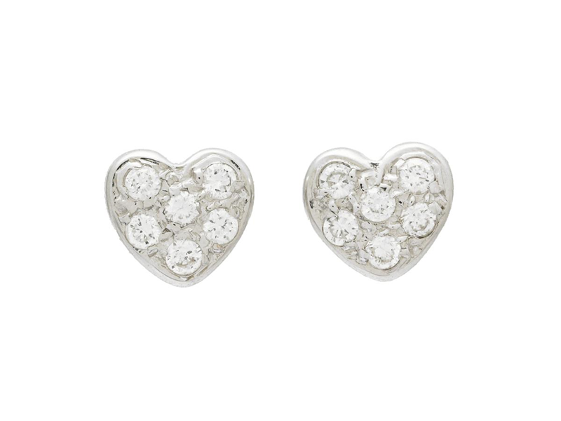 EARRINGS, 18K white gold, hearts, 12 brilliant cut diamonds approx. 0,11 ctw, approx. W/SI, pushback, width 5,0 mm, height 4,5 mm, weight 1,0 g.