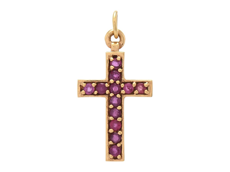 PENDANT, cross, 18K gold with rubies, weight 2,6 g, 14x20 mm