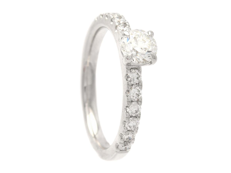 RING, 18K white gold, brilliant cut diamond 0,50 ct, TW(G)/VVS2, GIA Diamond Dossier 2407455522, 12 brilliant cut diamonds approx. 0,36 ctw, approx. TW/VS, size 16,5 mm, weight 3,7 g.