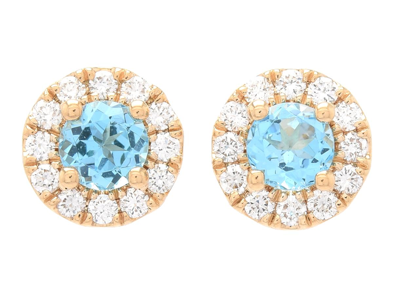 EARRINGS, 18K gold, 2 round faceted blue topazes approx. 0,67 ctw, 24 brilliant cut diamonds approx. 0,25 ctw, approx. TW/VS, pushback, diameter 7,5 mm, weight 2,2 g.