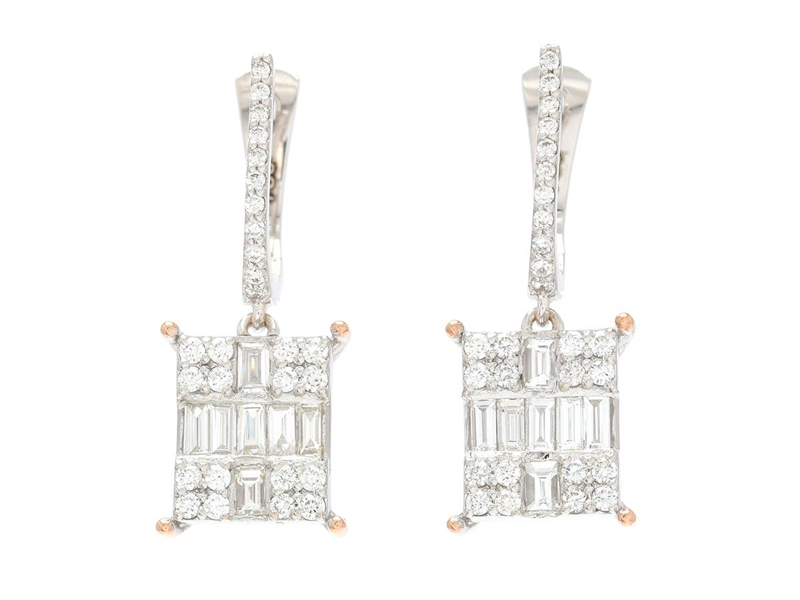 EARRINGS, 18K rose gold, partly rhodium plated, 68 baguette cut - and brilliant cut diamonds approx. 1,02 ctw, approx. TW/VS, height 25 mm, weight 5,3 g, huggies.