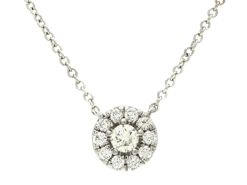 NECKLACE, 18K white gold, 11 brilliant cut diamonds approx. 0,21 ctw, of which center stone approx. 0,08 ct, approx. TW-TCa/VVS-VS, diameter 6,5 mm, length 42/45 cm, weight 2,4 g.