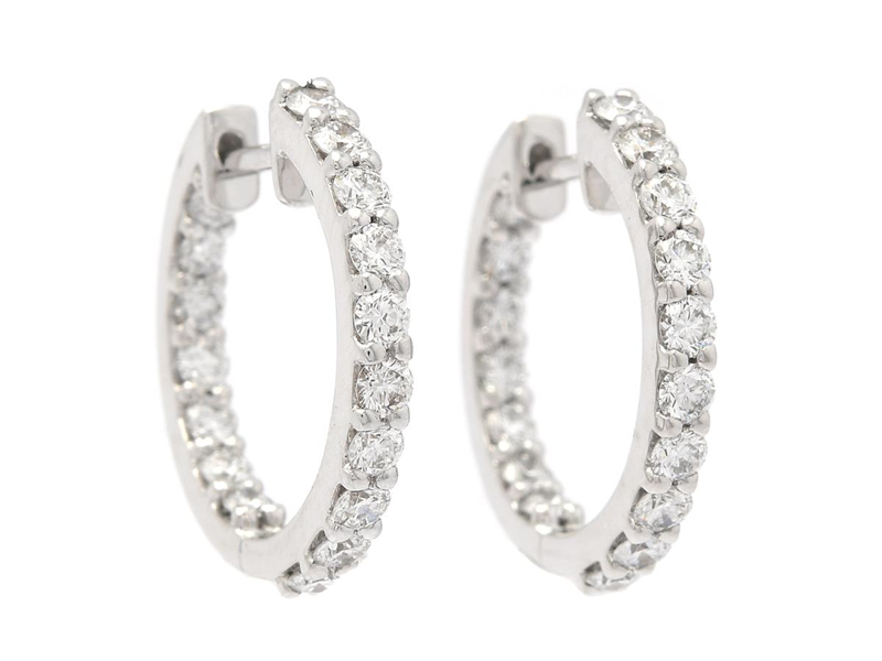 HOOP EARRINGS, 18K white gold, 34 brilliant cut diamonds approx. 1,07 ctw, approx. TW/VS, pushback, height 17 mm, width 2,0 mm, weight 4,2 g.