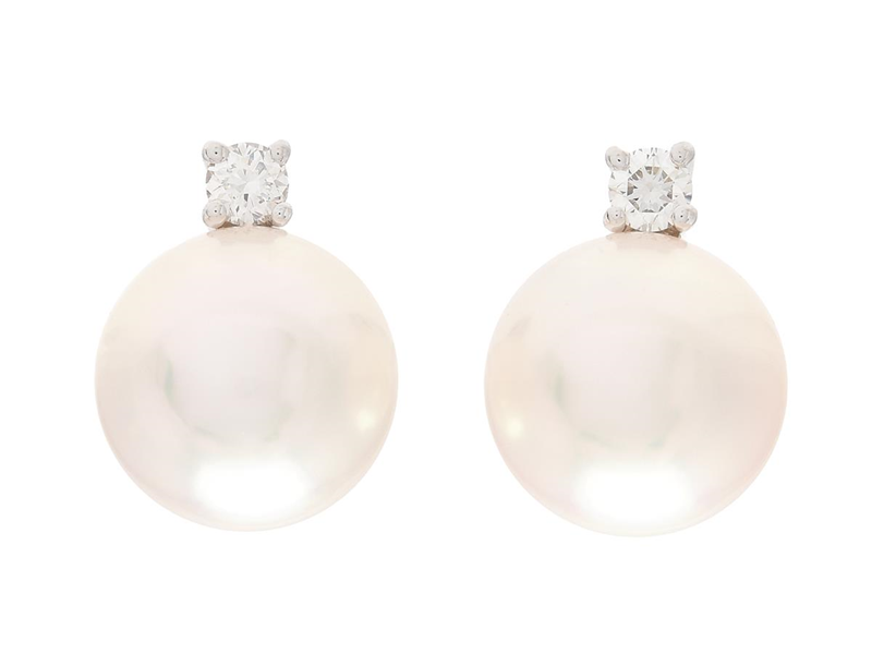 PEARL EARRINGS, 18K white gold, cultured pearls approx. 8,5-8,6 mm, brilliant cut diamonds approx. 0,10 ctw, approx. W/VS-SI, pushback, weight 3,1 g.
