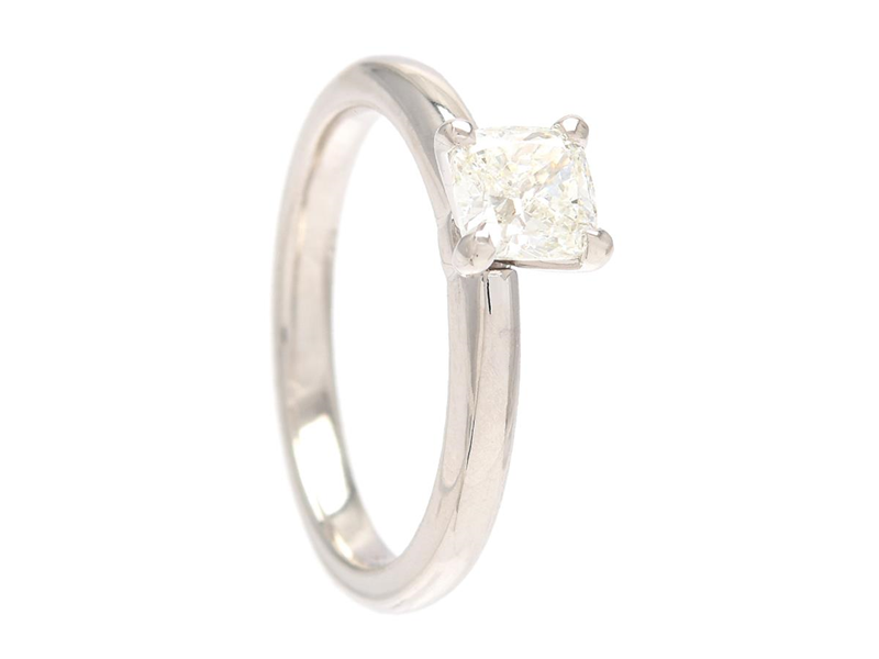 SOLITAIRE RING, 18K white gold, cushion cut diamond 0,75 ct, TW(G)/VS1, GIA Diamond Dossier 6227002214, size 16,5+ mm, weight 4,5 g.