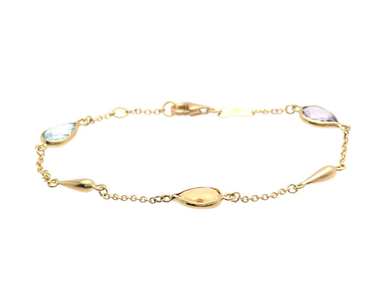 BRACELET, 18K gold with amethyst, citrine and blue topaz, weight 3,2 g, length 17-18 cm