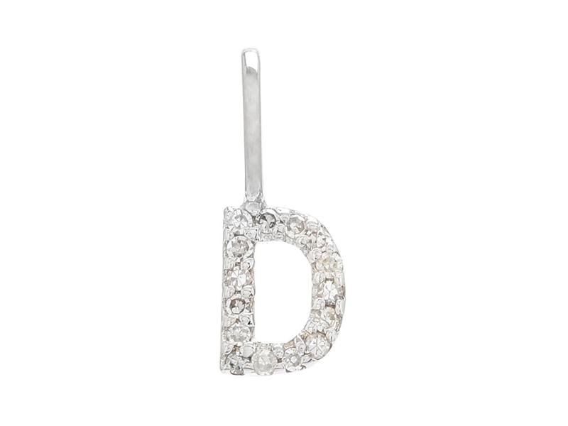 LETTER PENDANT, letter D, 18K white gold, single cut diamonds approx. 0,05 ctw, height 6,0 mm, width 4,0 mm, weight 0,3 g, a few diamonds with surface marks.