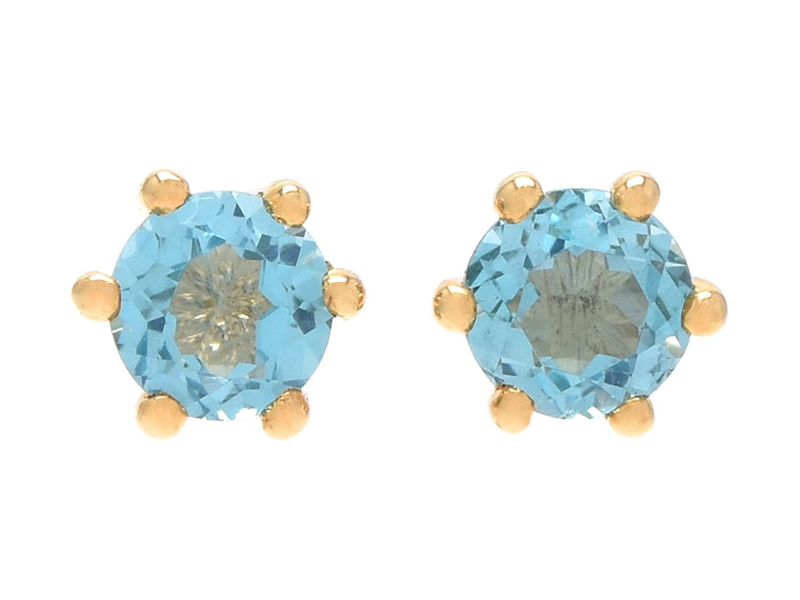 EARRINGS, 18K gold, round faceted blue topazes, pushback, weight 1,2 g.