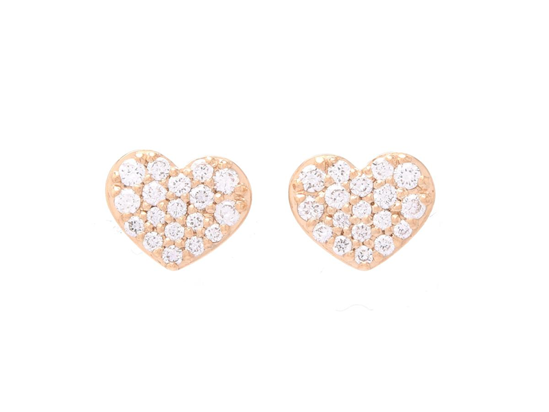 EARRINGS, 18K gold, hearts, 36 brilliant cut diamonds approx. 0,14 ctw, approx. W/VS-SI, pushback, height 5,0 mm, width 6,0 mm, weight 1,3 g.