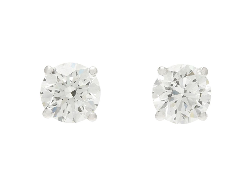 SOLITAIRE EARRINGS, 18K white gold, 2 brilliant cut diamonds approx. 1,42 ctw, Cr-TCa(J-K)/VS1, pushback, weight 1,2 g.