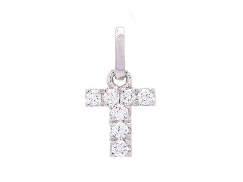 LETTER PENDANT, letter T, 18K white gold, 7 brilliant cut diamonds approx. 0,06 ctw, approx. W/VS-SI, height 5,5 mm, width 5,5 mm, weight 0,2 g.