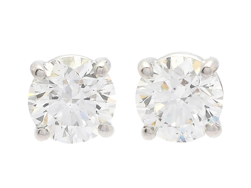 SOLITAIRE EARRINGS, 18K white gold, 2 brilliant cut diamonds 1,00 ctw, TW(G)/VS2, GIA dossier 6442485990, 5423564207, pushback, weight 2,0 g.