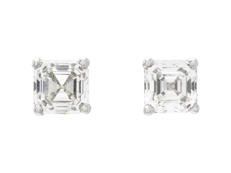 SOLITAIRE EARRINGS, 18K white gold, 2 asscher cut diamonds approx. 1,05 ctw, approx. W-TCr/SI1, pushback, weight 1,8 g.