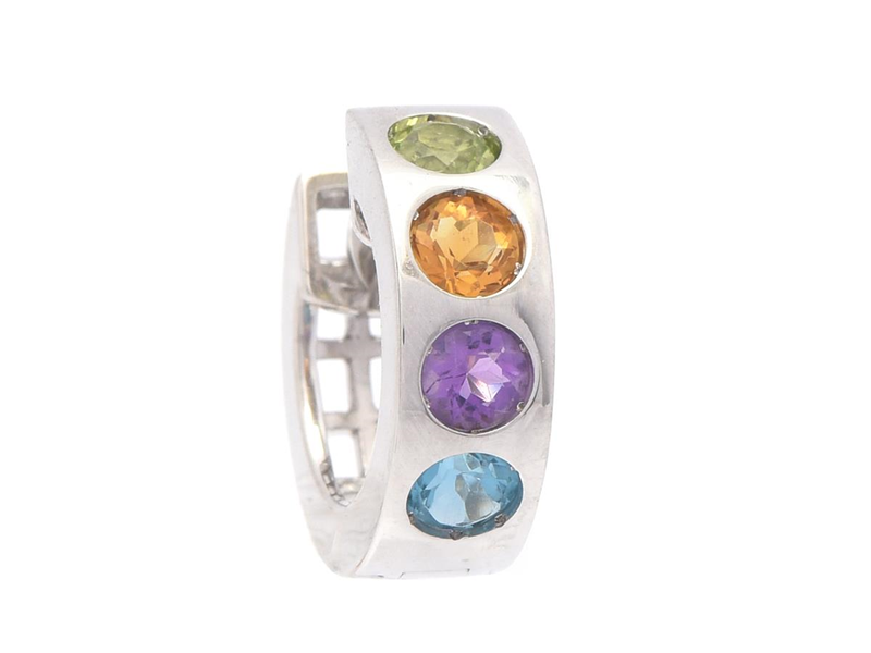 ONE EARRING, 18K white gold, round faceted peridot, topaz, citrine and amethyst approx. 0,50 ctw, pushback, height 13,0 mm, width 4,5 mm, weight 2,3 g.