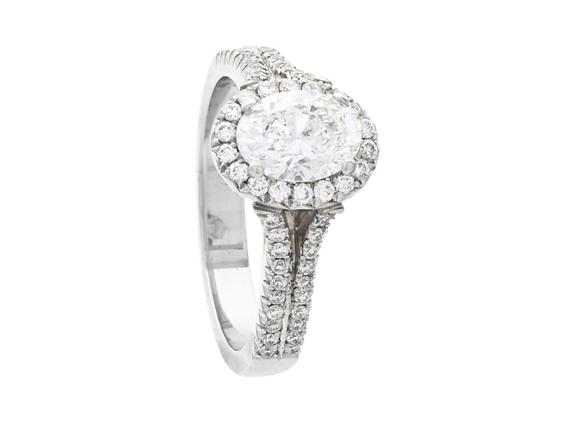 RING, platinum, oval-cut diamond 1,00 ct, River(E)/SI1, GIA Report No 1239812921, 58 brilliant cut diamonds approx. 0,32 ctw, approx. TW-W/SI-P, size 16,5 mm, weight 6,8 g, GIA certificate.