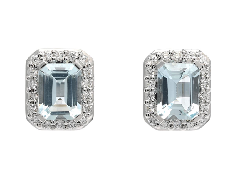 EARRINGS, 18K white gold, octagonal faceted aquamarines approx. 2,75 ctw, 36 brilliant cut diamonds approx. 0,42 ctw, approx. TW/VS, pushback, measurements 12,0 x 10,0 mm, weight 4,7 g.