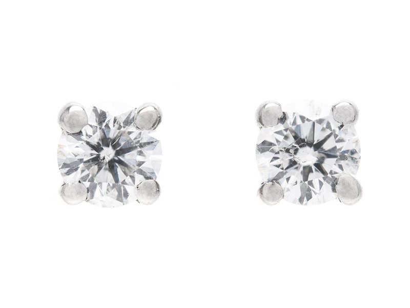 SOLITAIRE EARRINGS, 18K white gold, brilliant cut diamonds approx. 0,21 ctw, approx. W/P, pushback, weight 1,3 g, diamonds has inclusions that reaches the surface.