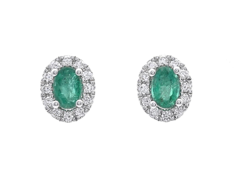 EARRINGS, 18K white gold, 2 oval faceted emeralds approx. 0,80 ctw, 24 brilliant cut diamonds approx. 0,30 ctw, approx. TW/VS, pushback, measurements 9,5 x 8,0 mm, weight 2,3 g.
