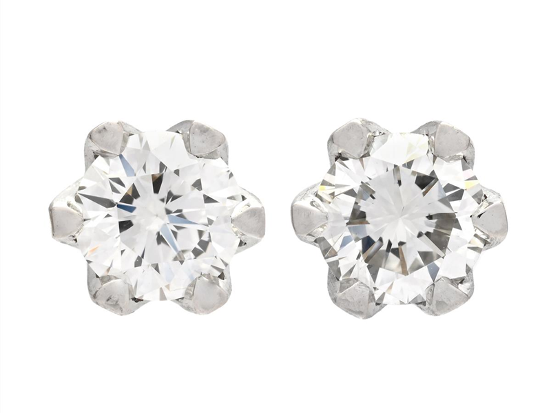 SOLITAIRE EARRINGS, 18K white gold, brilliant cut diamonds 0,87 ctw, TW-W(G-H)/VS1, GIA dossier 14658752, weight 1,8 g, pushback.