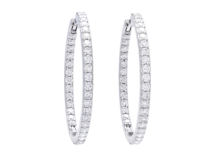 HOOP EARRINGS, 18K white gold, 72 brilliant cut diamonds approx. 2,34 ctw, approx. TW-Cr/VS-P, pushback, height 34,0 mm, width 2,5 mm, weight 9,5 g.