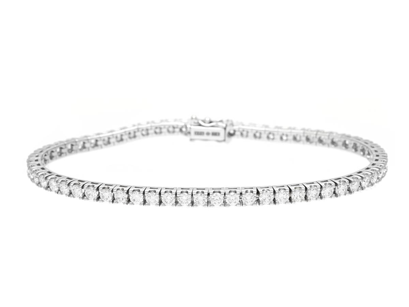 TENNIS BRACELET, 18K white gold, 60 brilliant cut diamonds approx. 5,70 ctw, approx. TW-W/VVS-VS, length 20 cm, weight 17,2 g, one diamond approx. TCa.