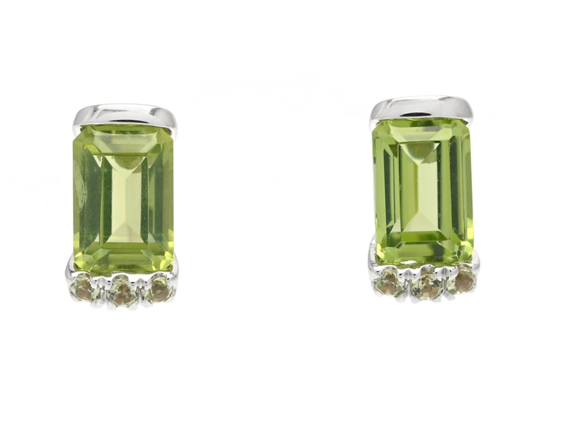 EARRINGS, 18K white gold, octagonal and round cut peridot approx. 1,46 ctw, pushback, measurements approx. 8,5 x 4,5 mm, weight 1,4 g.