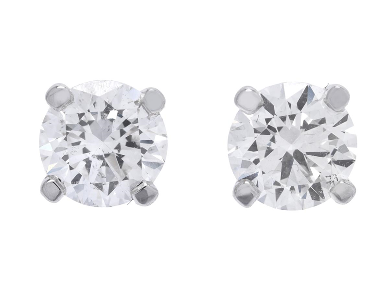 SOLITAIRE EARRINGS, 18K white gold, 2 brilliant cut diamonds approx. 1,00 ctw, approx. TW(G)/SI1, GIA laser inscription 1453880043, 6451170818 and dossier, pushback, weight 1,4 g.
