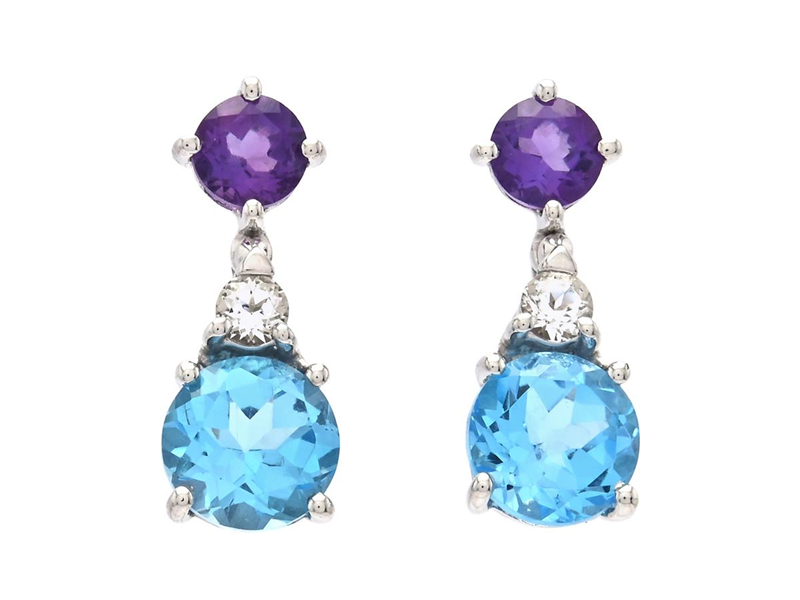 EARRINGS, 18K white gold, amethysts approx. 0,49 ctw, blue topazes approx. 2,12 ctw, white topazes approx. 0,15 ctw, pushback, length 15,0 mm, weight 2,6 g.