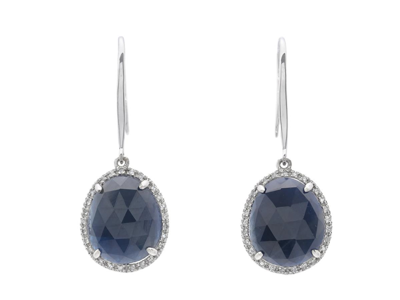 EARRINGS, 18K white gold, rose cut opaque sapphires approx. 11,30 ctw, single cut diamonds approx. 0,15 ctw, hooks, length 32,0 mm, weight 4,2 g.