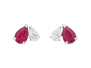 EARRINGS, 18K white gold, drop shaped brilliant cut diamonds approx. 0,32 ctw, approx. TW/VS, drop shaped faceted rubies approx. 1,28 ctw, pushback, height 6,5 mm, width 7,0 mm, weight 2,0 g, one the ruby has small notch.