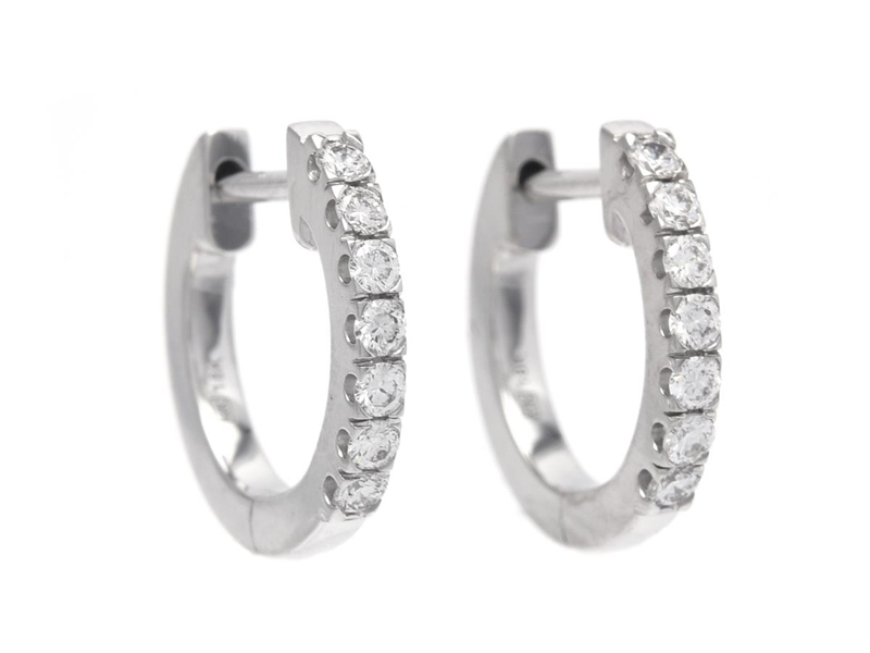EARRINGS, 18K white gold, 14 brilliant cut diamonds approx. 0,18 ctw, approx. TW-W/VS-SI, pushback, height 12,0 mm, width approx. 1,5 mm, weight 2,2 g.