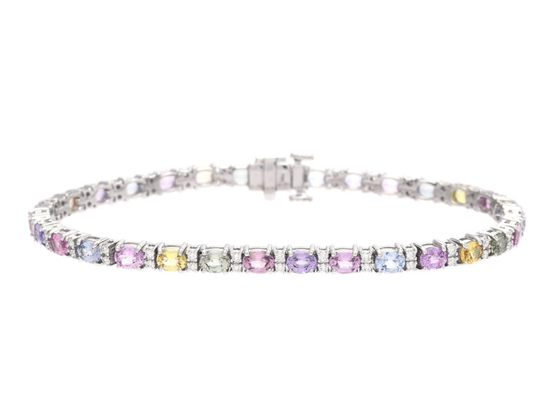 BRACELET, 18K white gold, 31 oval pastel sapphires approx. 6,76 ctw, 62 brilliant cut diamonds approx. 0,55 ctw, approx. W-TCr/SI, length 17,5 cm, weight 11,7 g, some diamonds with surface defects.
