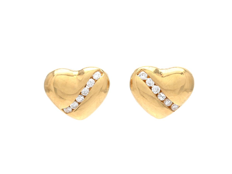 EARRINGS, 18K gold, hearts, 12 brilliant cut diamonds approx. 0,13 ctw, approx. TW/VS-SI, pushback, measurements 10,0 x 8,5 mm, weight 3,4 g, one diamond is damaged.