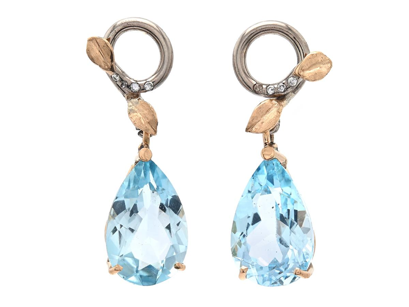 EARRINGS, 18K gold/white gold, pear shaped topazes 9,72 ctw, brilliant cut diamonds 0,05 ctw, Mandestam, height 28 mm, weight 5,3 g, pushback, original box.