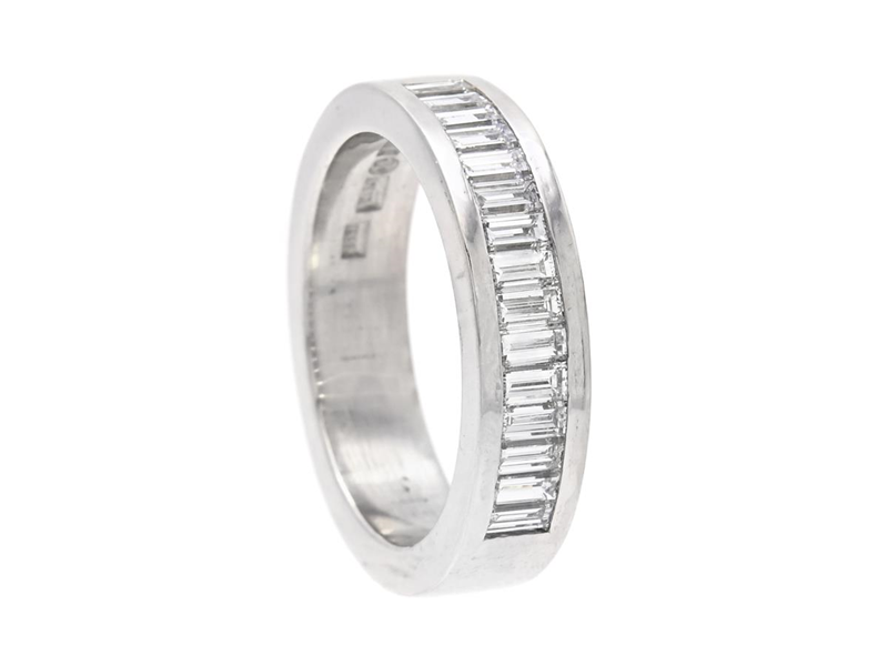 ETERNITY RING, 18K white gold, 15 baguette cut diamonds approx. 0,93 ctw, approx. TW/VS, Ateljé Guld-Bros, heart on ring shank, size 16,75 mm, weight 8,8 g.