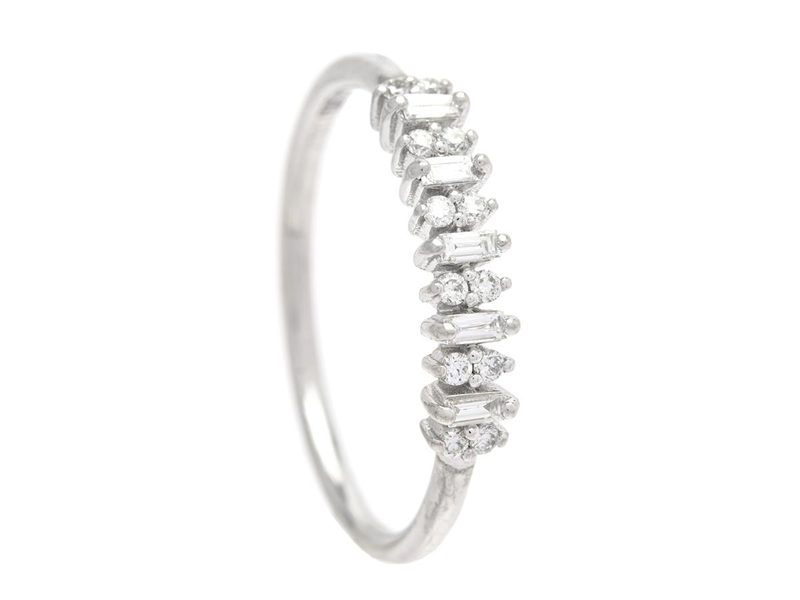 RING, 18K white gold, brilliant cut diamond-, baguette cut and taper cut diamonds approx. 0,12 ctw, approx. TW-W/VS-SI, size 17,25 mm, weight 2,0 g.