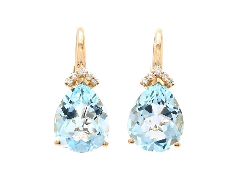 EARRINGS, 18K gold, 2 pear shaped aquamarines approx. 4,84 ctw, 10 brilliant cut diamonds approx. 0,04 ctw, approx. W/VS-SI, closable hooks, length 19,0 mm, weight 3,7 g.
