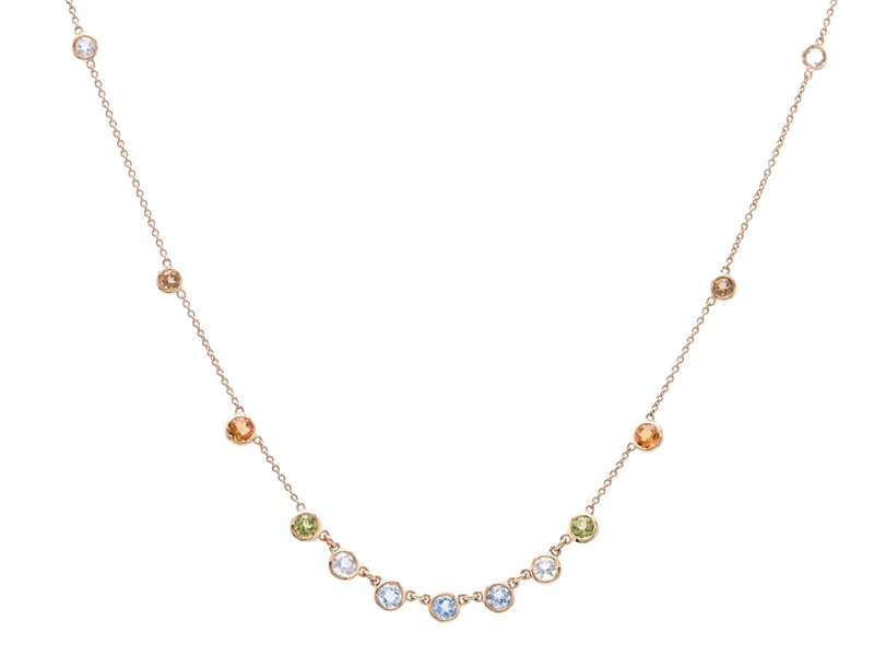 NECKLACE, 18K gold with topazes, citrines, peridots, prasiolites 1,29 ctw, weight 2,8 g length 40/42 cm