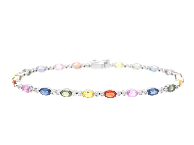 BRACELET, 18K white gold, oval faceted different colours sapphires approx. 6,27 ctw, brilliant cut diamonds approx. 0,33 ctw, approx. W/VS-SI, length 18 cm, weight 9,0 g.
