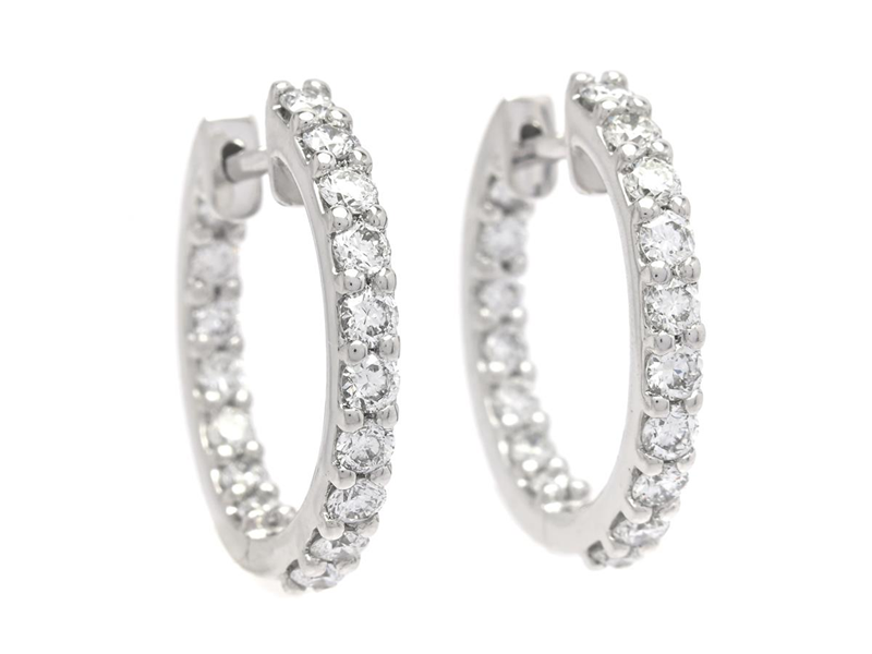 EARRINGS, platinum, 34 brilliant cut diamonds approx. 1,02 ctw, approx. TW/VS, pushback, height 17 mm, width 2,0 mm, weight 6,4 g.