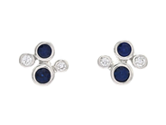 EARRINGS, 18K white gold, 4 brilliant cut diamonds approx. 0,04 ctw, approx. W/VS-SI, 4 round faceted blue sapphires approx. 0,19 ctw, pushback, measurements 7,0 x 5,5 mm, weight 1,3 g.