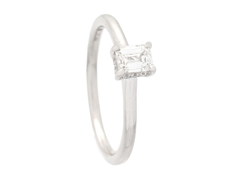 RING, 18K white gold, emerald cut diamond 0,40 ct, TW(F)/VS1, GIA Diamond Dossier 2497263216, 10 brilliant cut diamonds 0,04 ctw, approx. TW-W/VS, size 17,25 mm, weight 3,0 g.