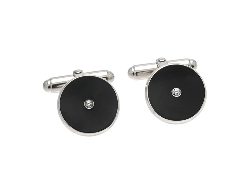 CUFFLINKS, sterling silver, black enamel, 2 brilliant cut diamonds approx. 0,06 ctw, approx. W/VS-SI, diameter 15,0 mm, weight 9,6 g.