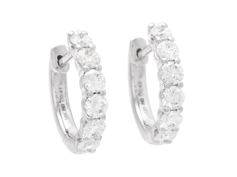 HOOP EARRINGS, 18K white gold, 12 brilliant cut diamonds approx. 0,83 ctw, approx. TW/VS, pushback, height 14,0 mm, weight 2,8 g.
