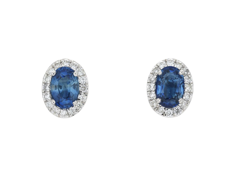 EARRINGS, 18K white gold, 32 brilliant cut diamonds approx. 0,27 ctw, approx. TW-TCr/P, 2 oval cut sapphires approx. 1,26 ctw, pushback, weight 1,9 g,
